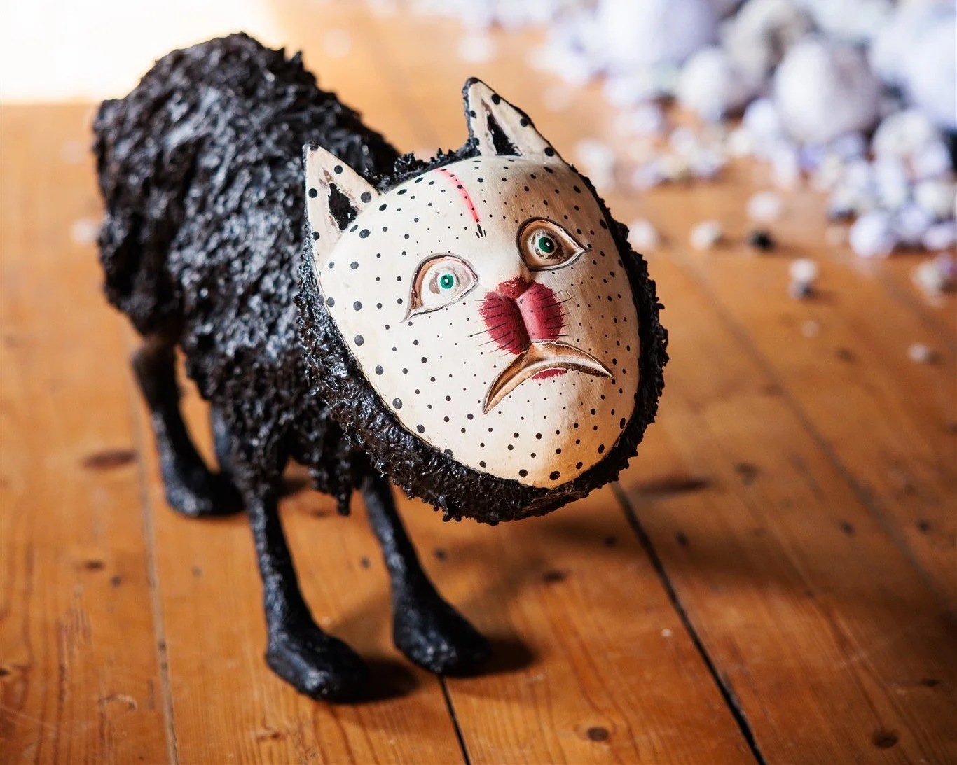 ‘Helping Cat’ 2025 Reclaimed 70’s wood cat mask, epoxy putty, epoxy clay, paper Mache, paint
